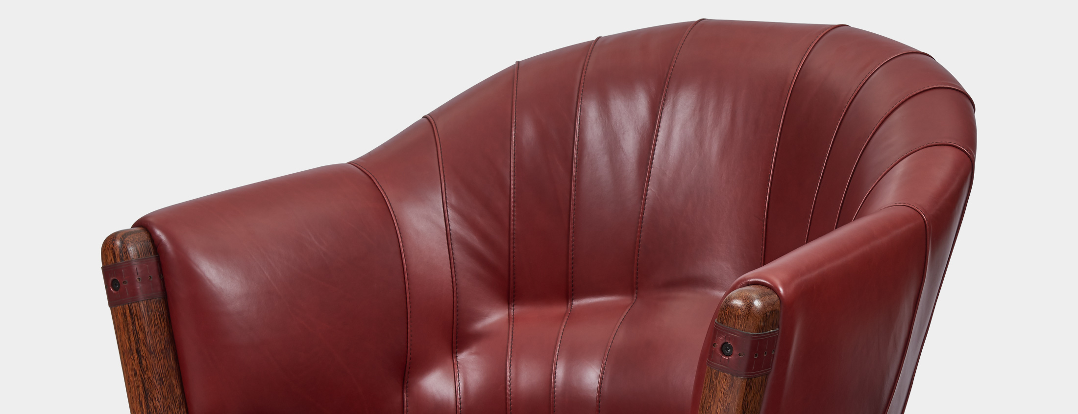 Lima has echoes of the classic tub chair. An elegant piece with an exotic twist. Its contoured cushion envelopes the body, providing comfort and ergonomics. The unique horn-shaped legs are crafted and polished from Palmwood and embellished with leather strapping. Underpinned with a steel frame for durability.