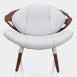 A comfortable modern design with tribal influences. The distinctive leaf-shaped back and legs are polished Palmwood. Decorated with leather binding and plaiting.